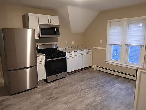 3 bedroom, 3rd floor with gas heating and cooking. Large bedrooms, private laundry hookups (bring your washer/dryer) in basement with off-street parking in nice neighborhood